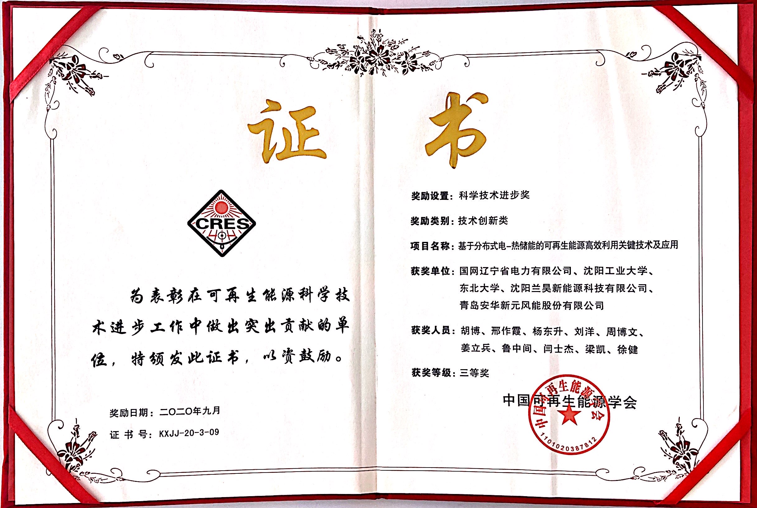 中國(guó)可再生能源學(xué)會(huì)科學(xué)技術(shù)獎(jiǎng)